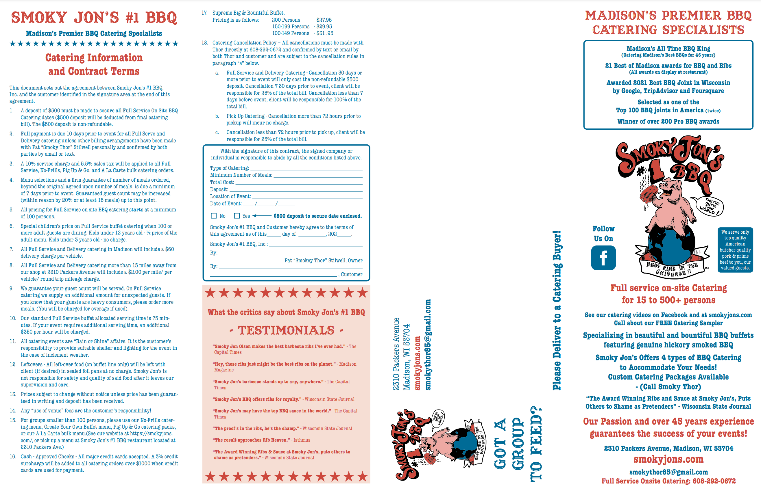 Smoky Jon’s #1 BBQ Catering Menu